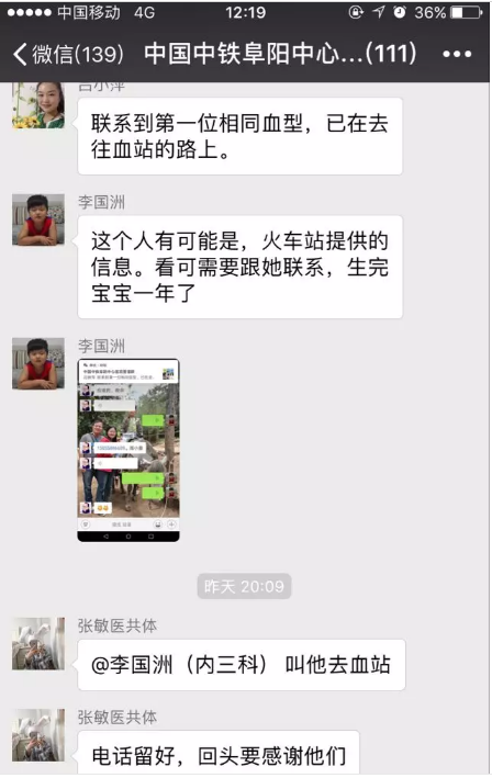 时间紧急,病情危重,患者已经出现休克状态,该院医护人员立刻同患者家属沟通献血事宜,却得知患者家族中无相同血型。医护人员随即与阜阳市中心血站联系,却得知阜阳市中心血站熊猫血告急!怎么办?!时间一分一秒流逝,患者出血量持续增加,随时有生命危险!该院医务人员即刻在院内外微信群、QQ群、朋友圈发出求救,同时与阜阳市广播电台取得联系,积极向广大市民求救,仅仅几分钟,整个朋友圈热心人士百余人转发此条消息,具有相同血型或联系方式的热心市民,在半个小时内就打爆了该院检验科主任的手机。经过多方联系,积极调配,19:00左右,阜阳市中心血站将别院提前预约的800毫升红细胞,400毫升血浆及时调配给该患者使用,所有人悬着的一颗心才落了下来。