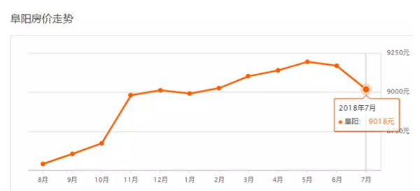 阜阳7月二手房均价 9018 元/m2,环比上月下跌1.64%。