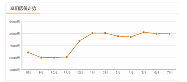 阜阳7月新房均价 7988 元/m2,环比上月持平。