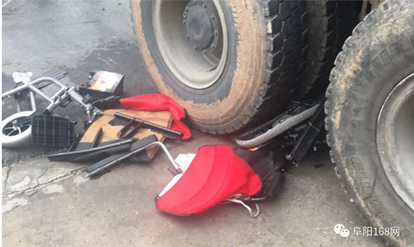 阜阳颍州路上一坐轮椅的老人被渣土车卷入车底……