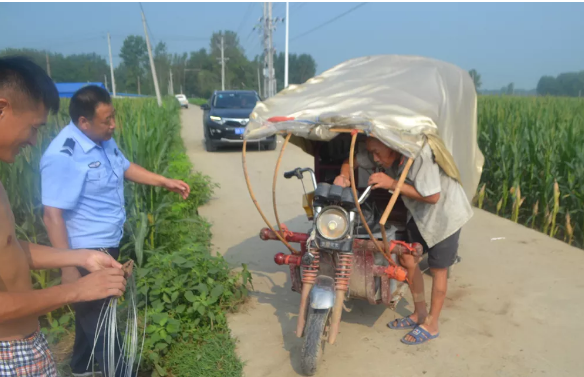 “警察同志吗?这里有个老人的电瓶车掉到路边沟里了,他让我帮他打电话求助,你们过来看看吧,在滑集镇朱刘行政村朱刘庄东西水泥路边。” 8月6日上午8时许,临泉县公安局滑集派出所民警接到报警电话。民警立即出
